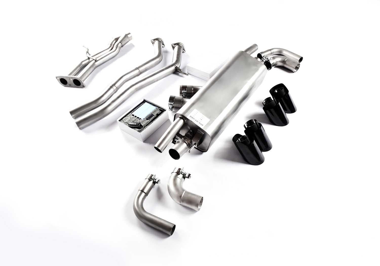 Valved exhaust, meaning that has remote, controlled valves - allowing a switch between an aggressive loud sports sound and a sound that is closer to the OEM sound